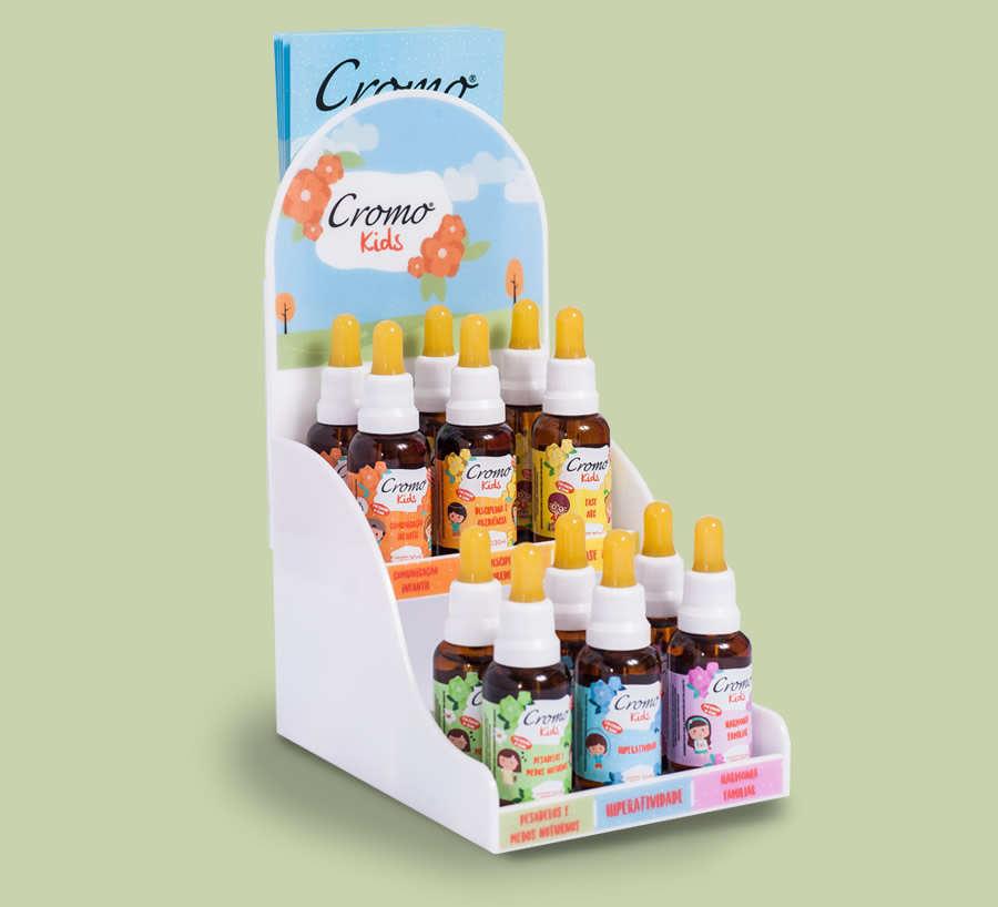 O CromoKids é indicado para bebês e crianças e 0 a 12 anos. As fórmulas foram elaboradas com teor reduzido de álcool, não apresentando nível de toxicidade às crianças.